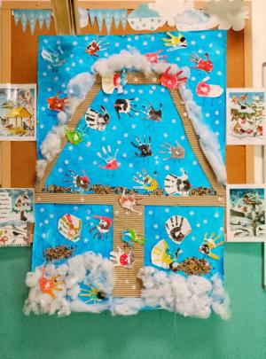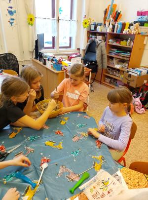 Společná výroba ptačího krmítka v družině.