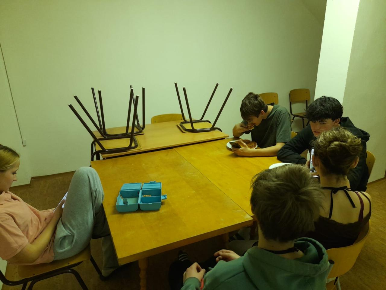 Po příchodu a ubytování si žáci užili společné hry a různé zábavné aktivity, které navodily příjemnou atmosféru a posílily třídního ducha. Než přišel čas jít spát, přesunuli se do školní kuchyňky, kde si společně připravili večeři.