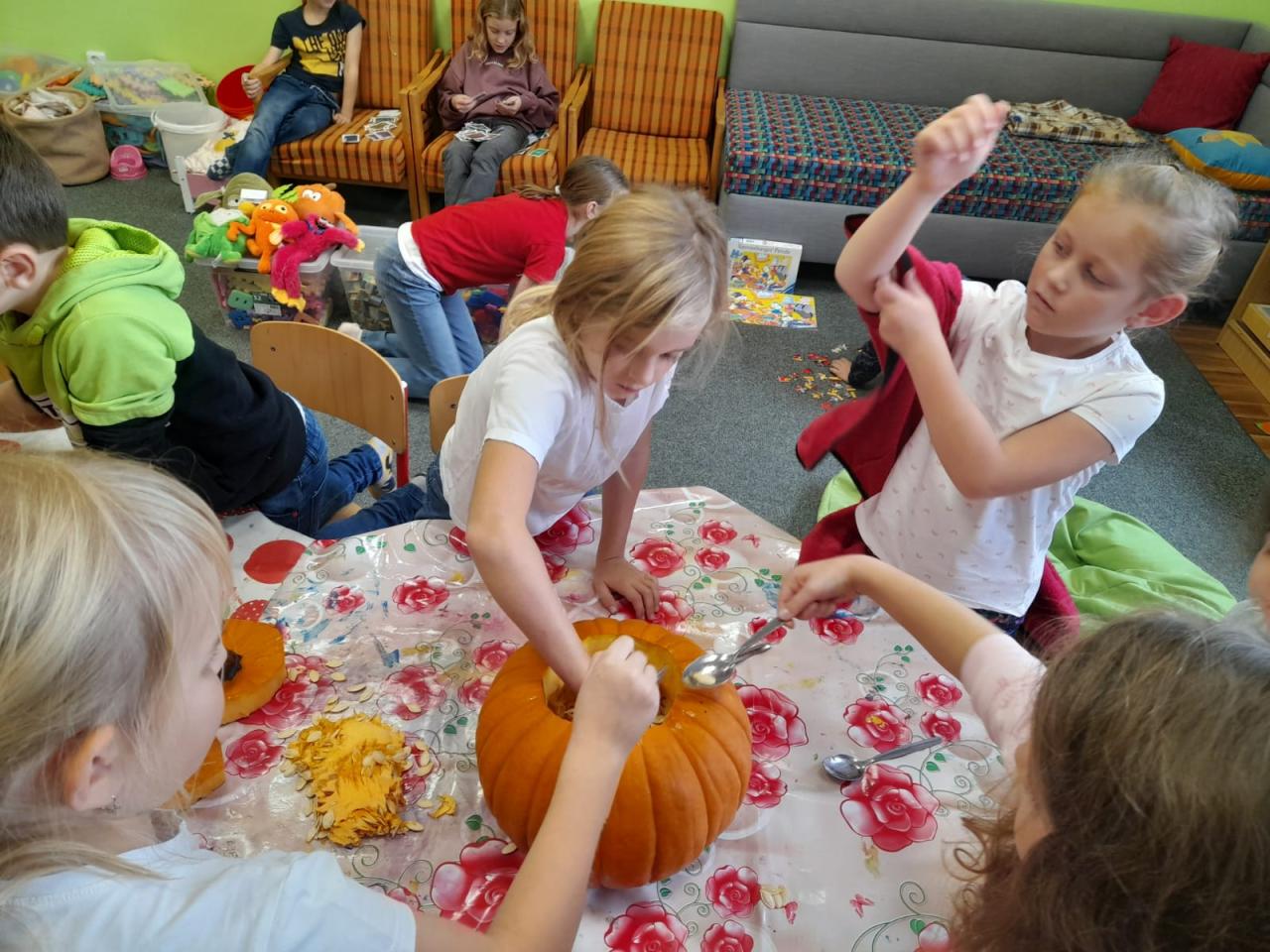 Minulý týden se v družině uskutečnily různé halloweenské aktivity, které potěšily všechny zúčastněné. Děti pekly mumie, i když některé detaily je potřeba vylepšit do příště. Dále se vydlabaly dýně, které si každý mohl originálně nazdobit. K tomu probíhalo tematické tvoření, které se opravdu vydařilo a přineslo spoustu zábavy a radosti.