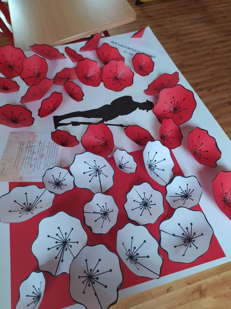 Žáci 5.A a 6.B se v úterý 11. listopadu 2025 zúčastnili vzpomínkové akce k uctění památky válečných veteránů. Akce proběhla v 11:00 u pomníku obětem 1. a 2. světové války na náměstí, kde si účastníci připomněli význam tohoto dne. Žáci 7.B se na výtvarné výchově podíleli poctivou prací na téma Vlčí mák České republiky (oficiální národní symbol válečných veteránů), čímž přispěli k oslavě památky obětí válek. Jejich úžasné výtvory jakožto součástí vzpomínkového aktu jsou vystaveny ve škole a ukázují jejich kreativitu a úctu k minulosti.
