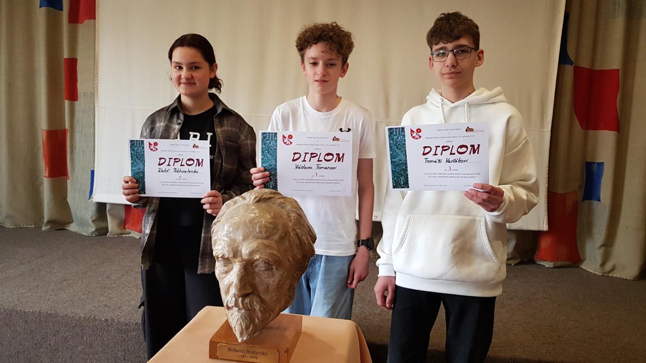 Václav Toman dosáhl svými získanými 22 body z 24 celkově možných na první místo a získal tak hlavní cenu! Naši dva zbylí žáci se pak obsadili pěkné 11. a 18. místo. Kromě diplomů a hodnotných cen si všichni nazpět domů do Bechyně odvezli nové zkušenosti a setkali se s matematikou i tak trochu jinak než jen ve školních lavicích.