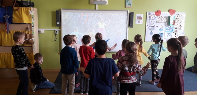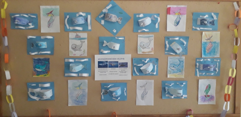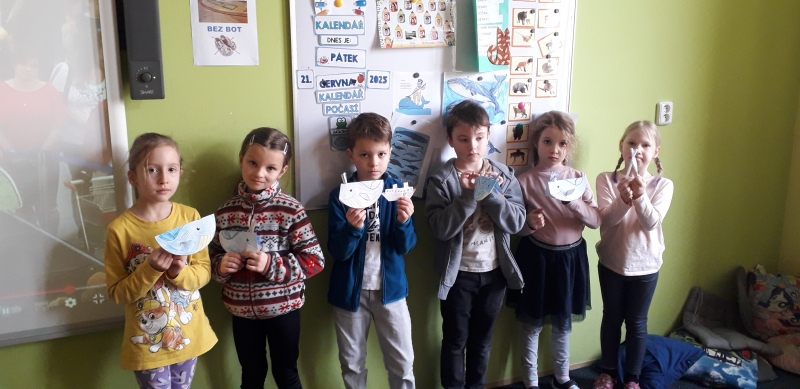 Nejmenší školáci se seznámili s největšími savci naší planety. A jak? S pohádkou Velryba a pruhované tričko, poslechem četby S příběhem Zahrada a velrybou ABYRLEV - loutkovou animací Jiřího Trnky. Stihli jsme poslech krátkých zajímavostí o kytovcích z Rádia Junior, čtení vět a velrybí kvíz, tvoření velryb z papíru, omalovánku s velrybou, tancování s velrybou - disco, pop, jazz variace na písně o velrybách